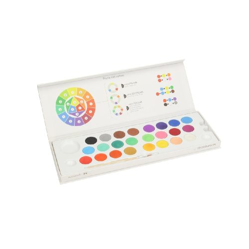 Contiene 24 Pastiglie acquerelli da 30 ml.