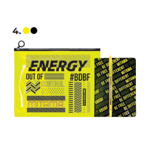 ASTUCCIO/POCHETTE A6 FLUO CON TACCUINO E PENNA MITAMA - SFONDO GIALLO FLUO TRASPARENTE/ZIP NERA (GIALLO FLUO/ZIP NERA)