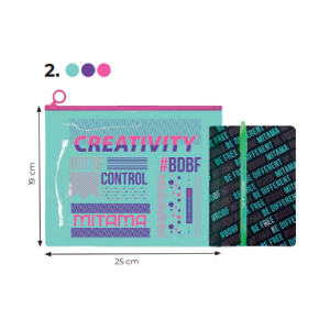 ASTUCCIO/POCHETTE A6 FLUO CON TACCUINO E PENNA MITAMA - SFONDO VERDE ACQUA CON ZIP ROSA FLUO (VERDE ACQUA/ZIP ROSA FLUO)