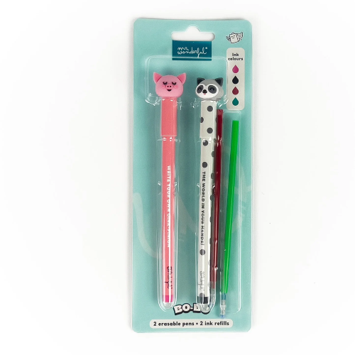 SET DI 2 PENNE CANCELLABILI BO-BO + 2 RICARICHE - PIMPI + RACOON