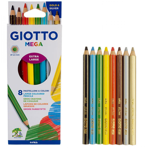 SCATOLA 8 MATITE COLORATE MEGA - 6 COLORI 1 SILVER + 1 GOLD