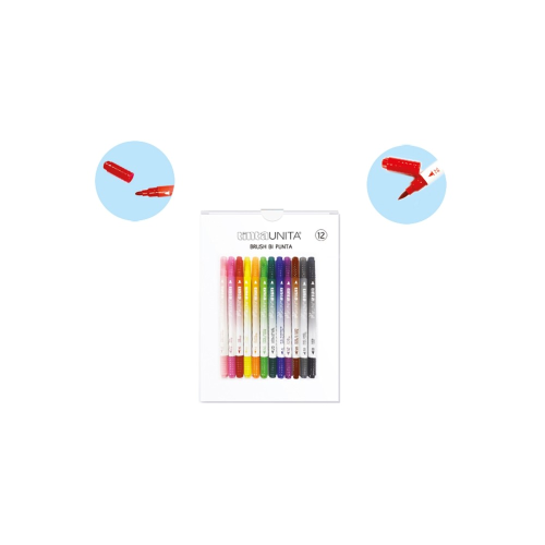 PENNARELLI BRUSH BI PUNTA TINTA UNITA - 12 PEZZI
