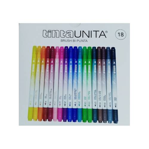 PENNARELLI BRUSH BI PUNTA TINTA UNITA - 18 PEZZI