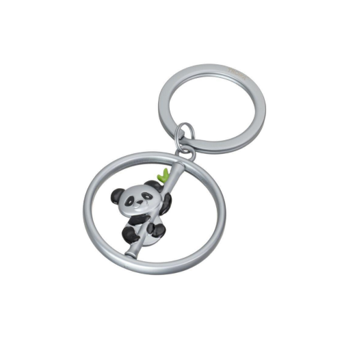 Portachiavi, Orso panda su bastoncino di bambù rotante, metallo fuso / smalto, opaco, multicolore / color argento