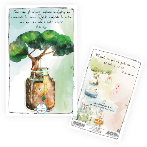 Quaderno formato A6 con aforismi di grandi autori e illustrazioni di Sara Pucci e Guido Olivieri