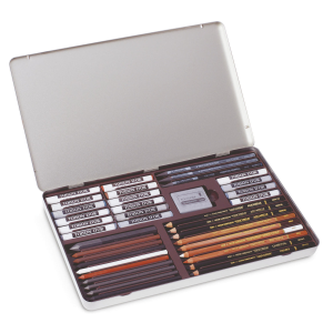 Contenuto: 9 matite in legno per artisti, 9 mine, Ø 5 mm, matita in grafite, 16 pastelli, 3 mine di grafite, 1 gomma pane.