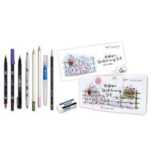 Nell'Urban Sketching Set troverai nove prodotti Tombow che possono essere perfettamente combinati tra loro. Il set include anche istruzioni passo passo con spiegazioni e suggerimenti dell'artista Carla Kamphuis. Il manuale è in DE, EN, ES, FR, IT e NL.