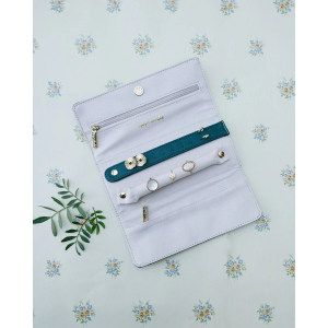 Il sacchetto per gioielli in pelle PU Catherine è progettato per soddisfare tutte le tue esigenze: ha due tasche con cerniera, un bastoncino per mettere gli anelli e una linguetta dedicata per riporre gli orecchini.