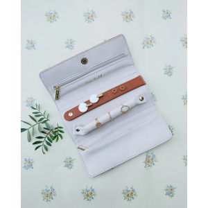 Il sacchetto per gioielli in pelle PU Catherine è progettato per soddisfare tutte le tue esigenze: ha due tasche con cerniera, un bastoncino per mettere gli anelli e una linguetta dedicata per riporre gli orecchini.