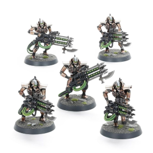 I Necron Immortals possiedono la consueta ed inquietante sagoma scheletrica della loro razza. I lunghi arti sono tenuti assieme da borchie metalliche e si ergono ricurvi, mentre le teste sono racchiuse tra piastre di corazza ed elaborati spallacci. L'iconografia necron è mostrata sullo sterno. Puoi equipaggiarli con i devastanti fucili gauss e le carabine tesla.